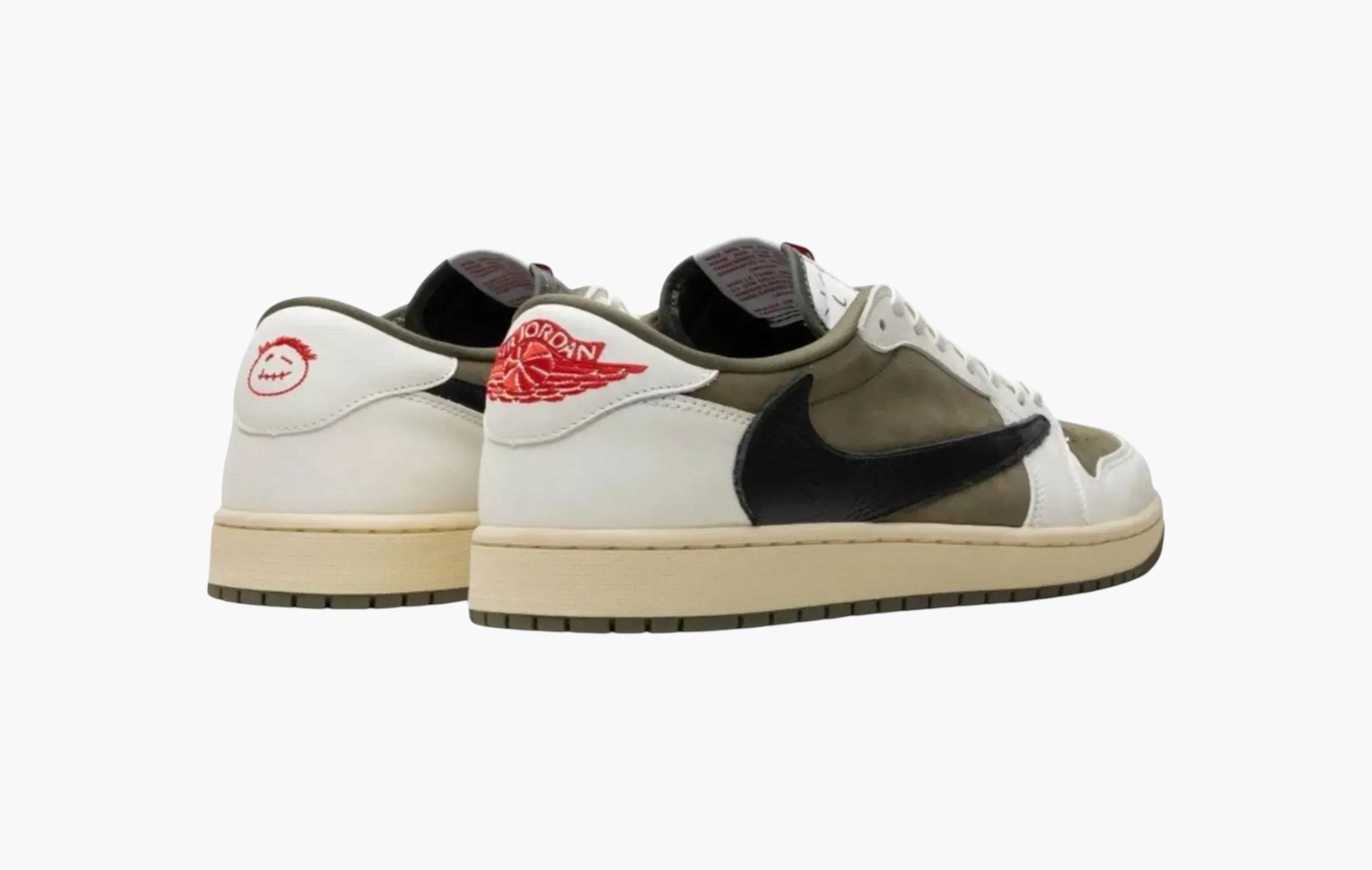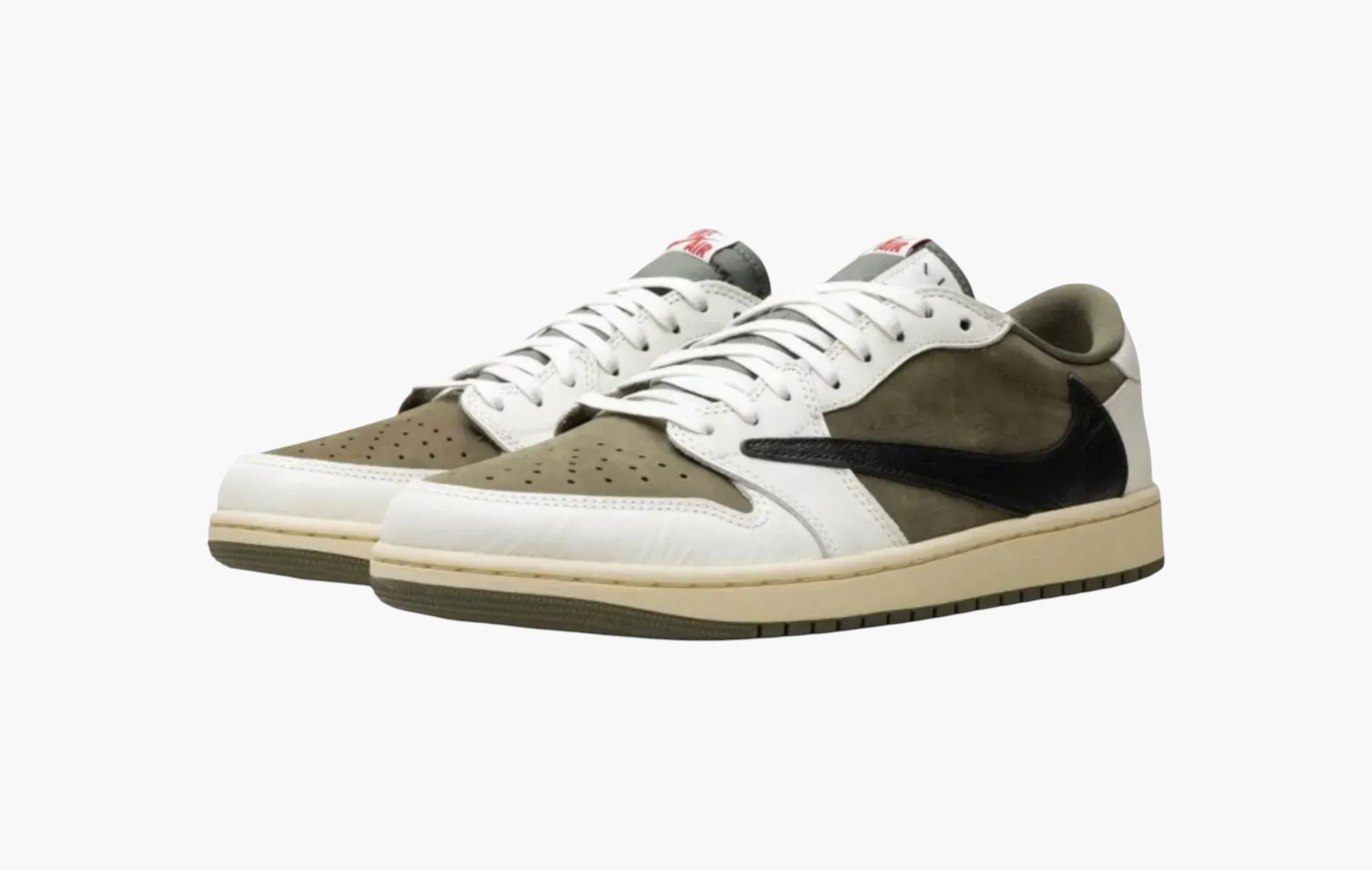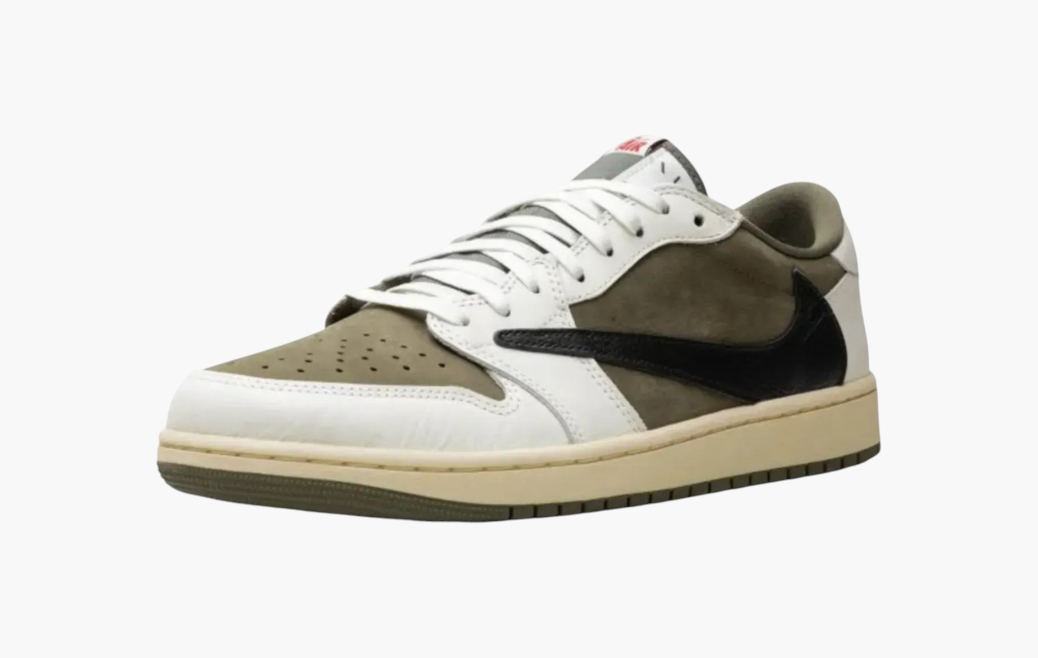 Трэвис Скотт периодически немного расширяет цветовую палитру своих релизов, оливковый цвет мы уже видели ранее на паре Travis Scott x Air Jordan 6 "Medium Olive", а в 2024 году вышли Travis Scott x Air Jordan 1 Retro Low OG SP «Medium Olive». Верх пары выполнен из замши оливкового-зелёного цвета с кожаными накладками цвета слоновой кости. Контрастный чёрный перевёрнутый свуш, брендинг в виде красной вышивки и кремовая подошва с оливковым аутсолом.