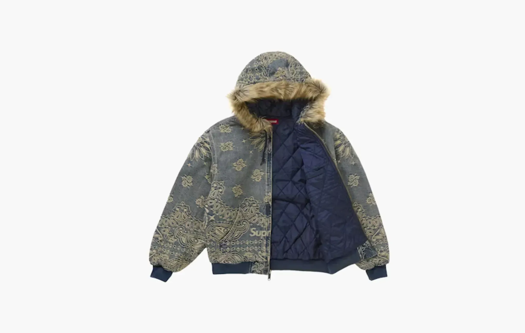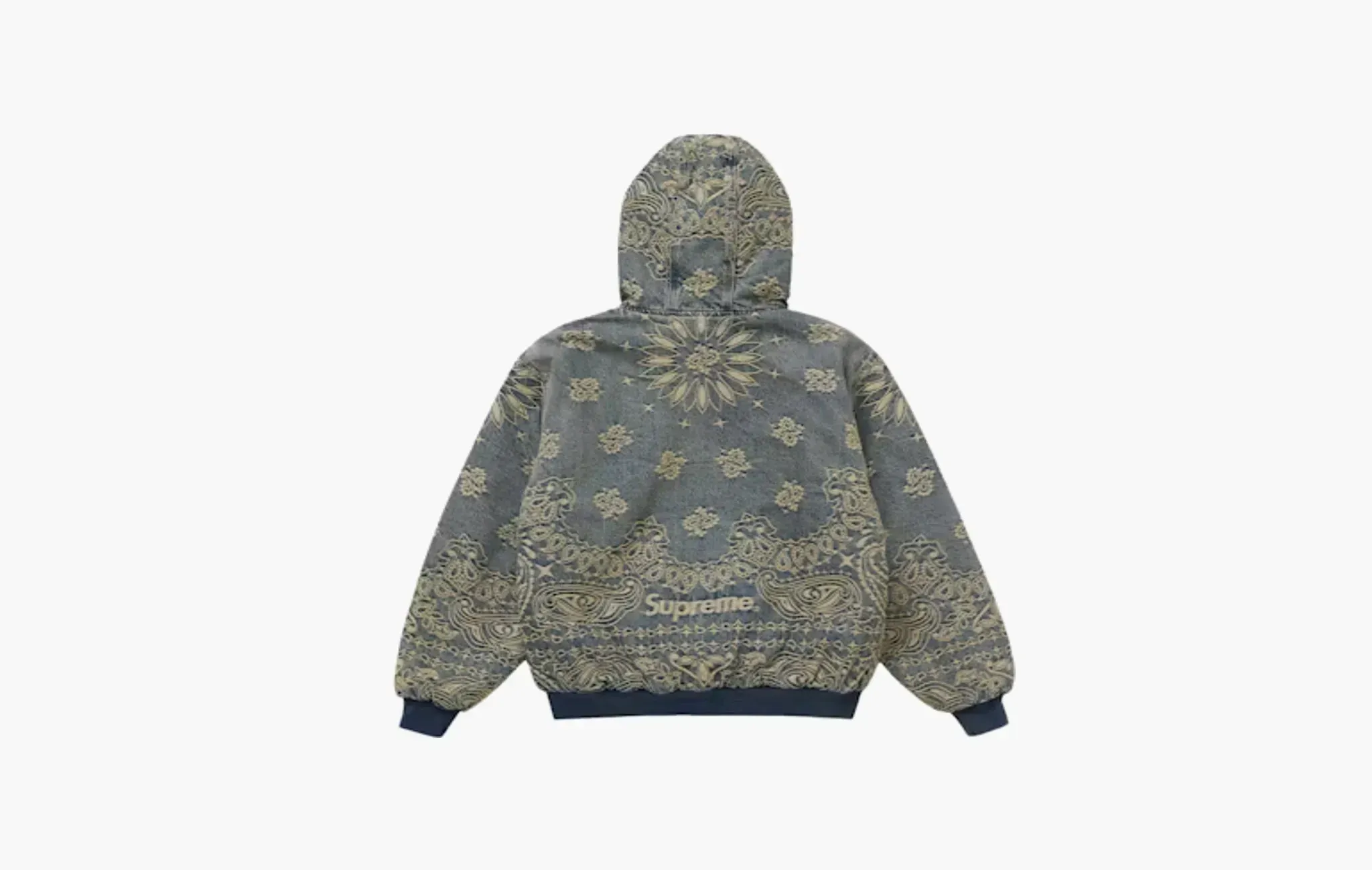 Bandana Jacquard Denim Hooded Work Jacket "Blue"