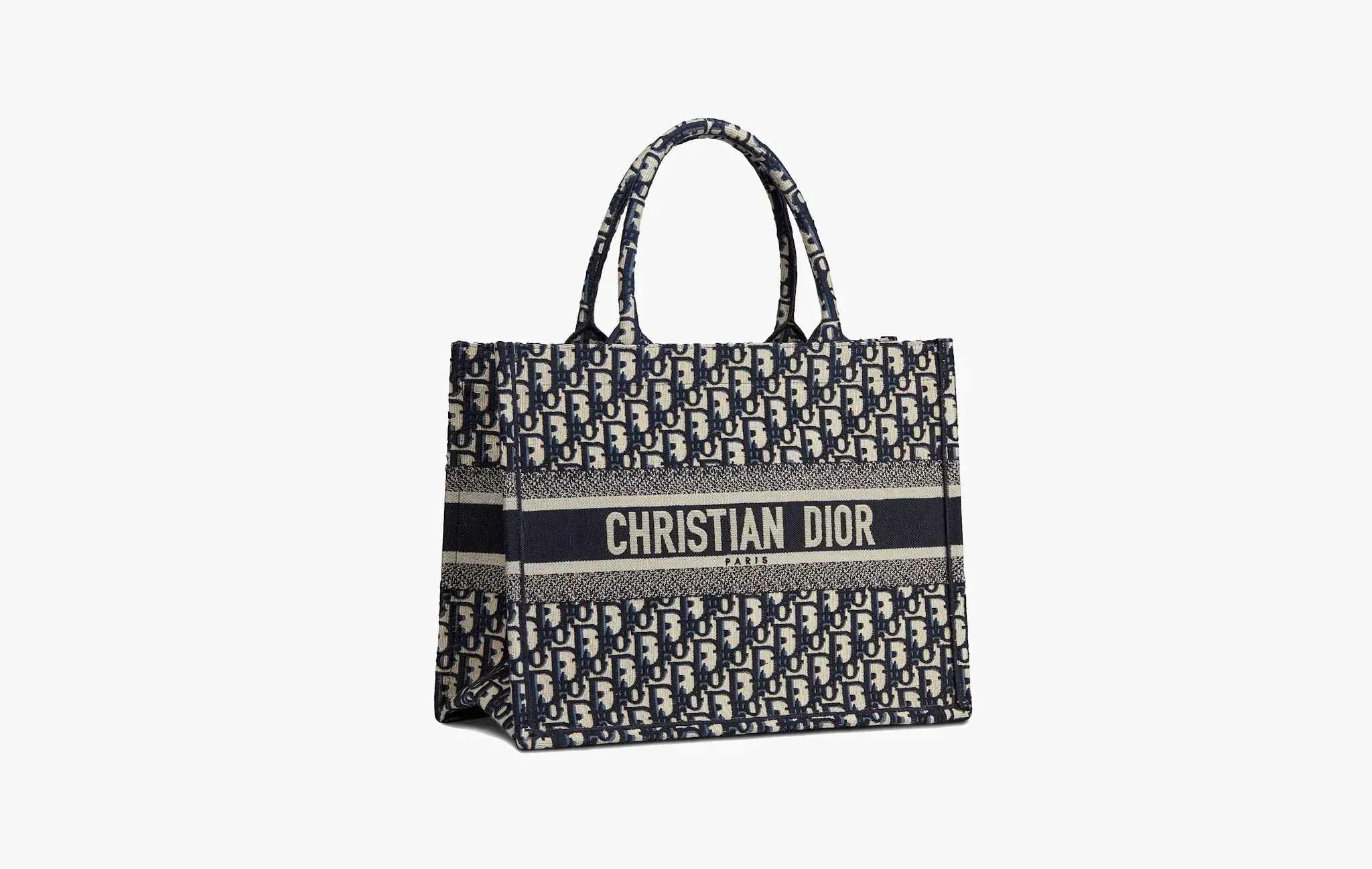 Oblique Embroidery Book Medium Tote Bag "Ecru Blue"