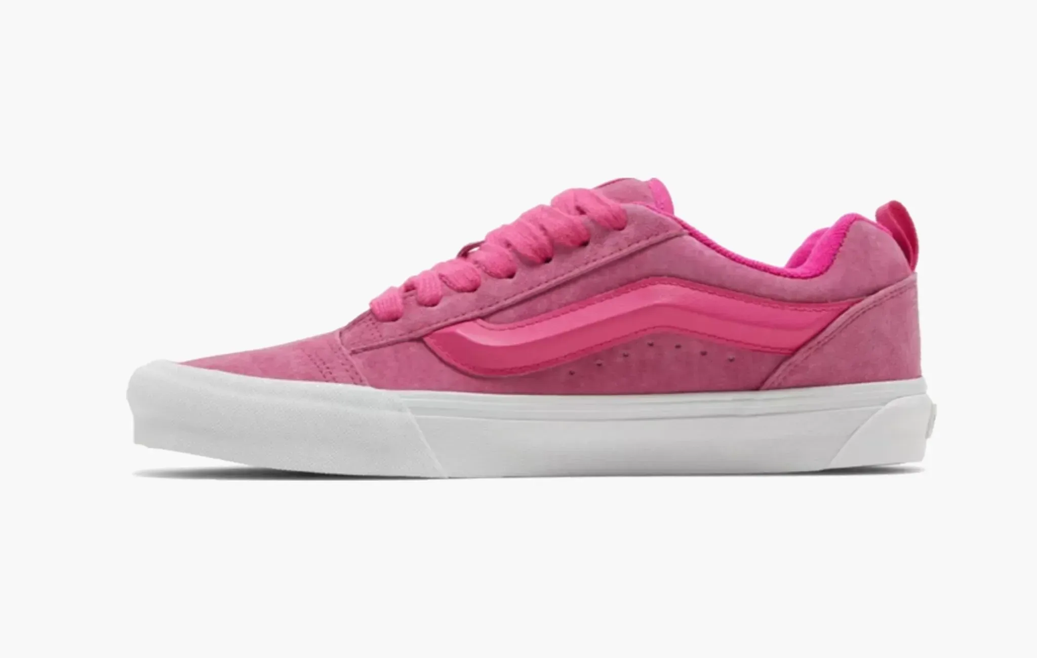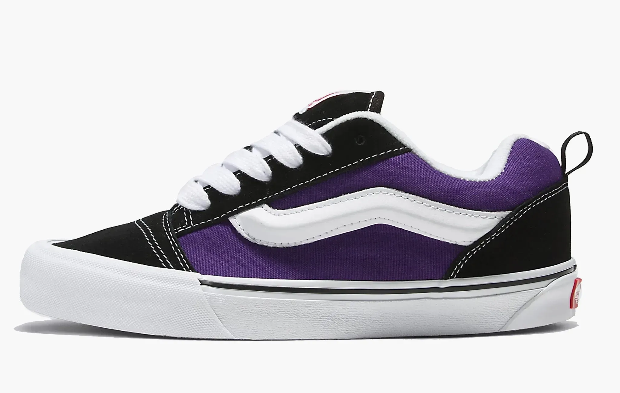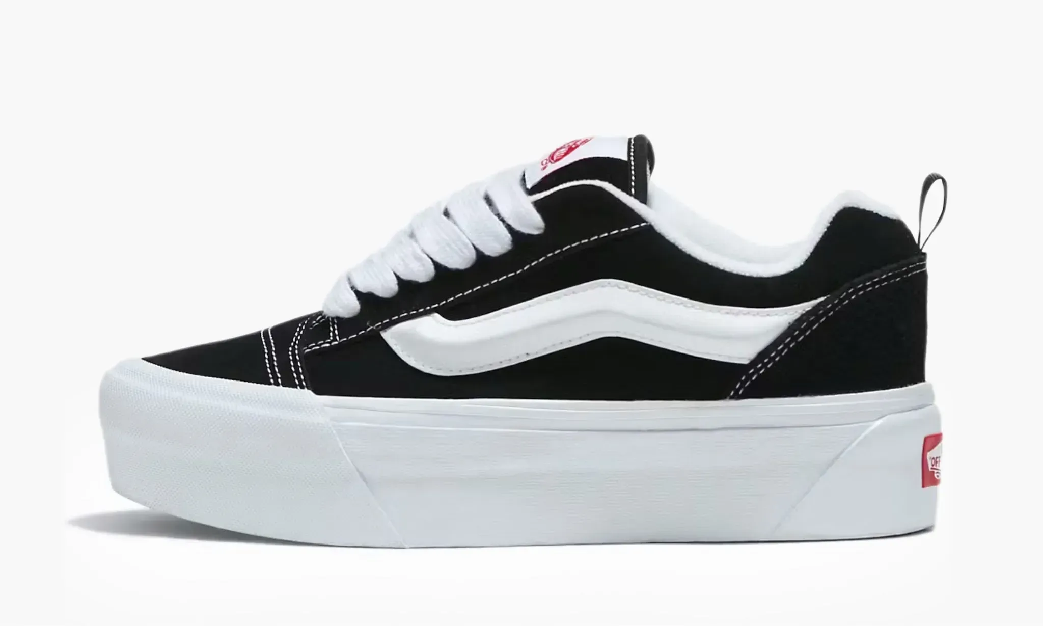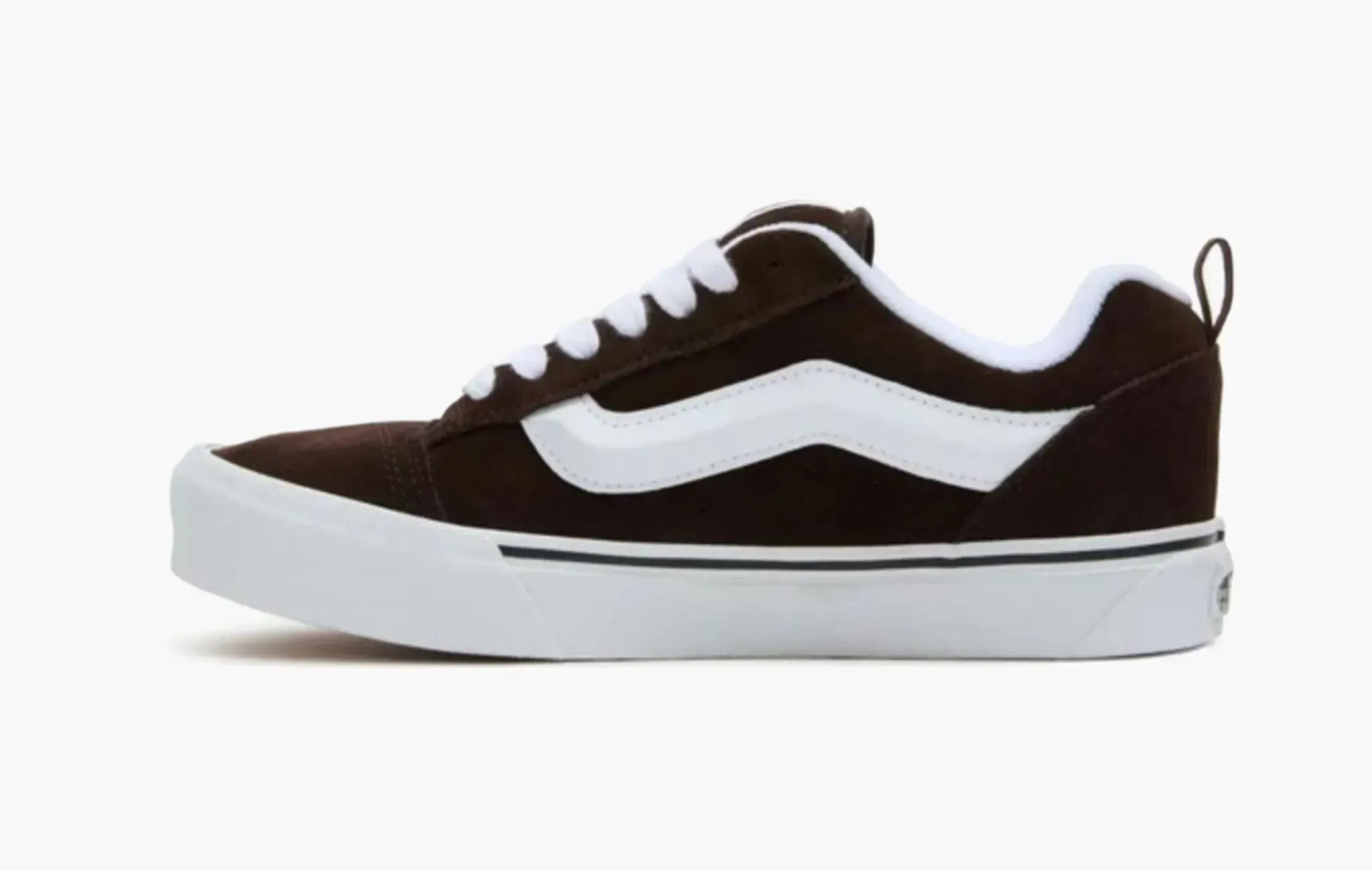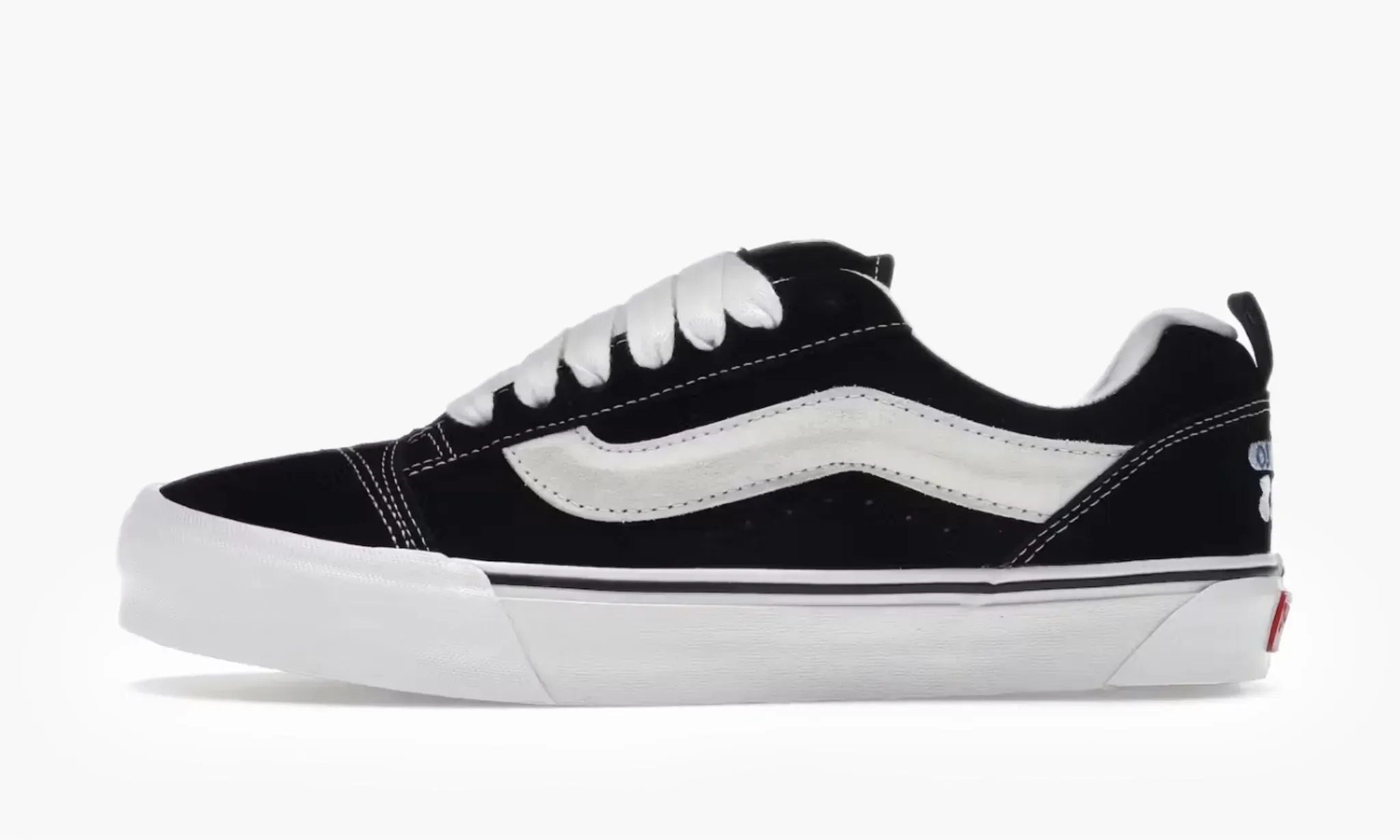 Культовые кеды Knu Skool "Black White", изначально созданные для скейтеров и быстро ставшие популярными в мире уличной моды, вновь привлекают поклонников стильной обуви благодаря своему минималистичному оформлению. Модель изготовлена из высококачественной натуральной замши черного цвета. Обновленная белая полоса, расположенная вдоль боковой поверхности, создает узнаваемый силуэт и притягивает взгляды. Контрастными элементами выступают белоснежные классическая подошва Vans и шнуровка. Завершают дизайн фирменные ярко-красные логотипы на язычках и задниках, где для удобства надевания кед присутствуют еще небольшие петли. Vans Knu Skool "Black White" впервые появились на полках магазинов 18 февраля 2023 года.