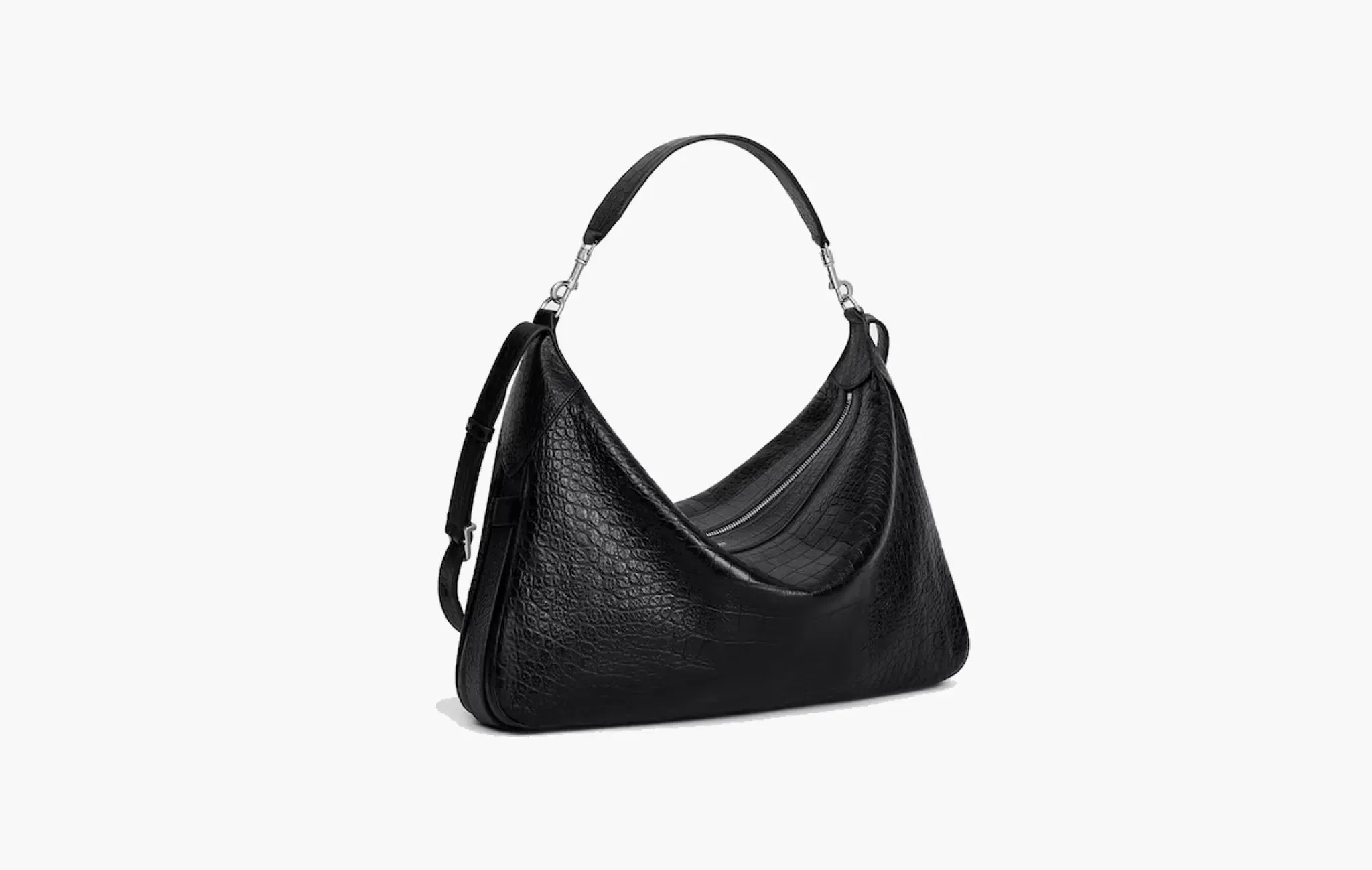 Large Strap Romy In Crocodile Embossed Deerskin "Black"