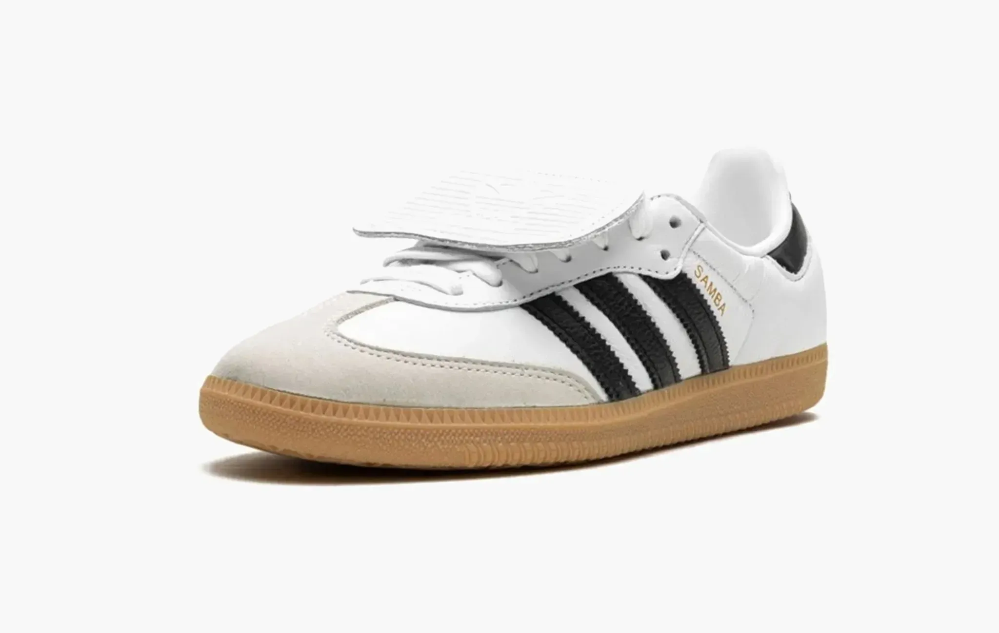 Изначально разработанные для игры в футбол в закрытых помещениях, кроссовки adidas Samba легко стали неотъемлемой частью уличной моды в наше время. Данная версия Samba LT — это смелое заявление, сделанное с помощью увеличенного язычка, как в винтажных футбольных бутсах. Оригинальная расцветка из белой кожи, серой замши, чёрных вставок и подошвы из натурально каучука выглядит просто идеально.