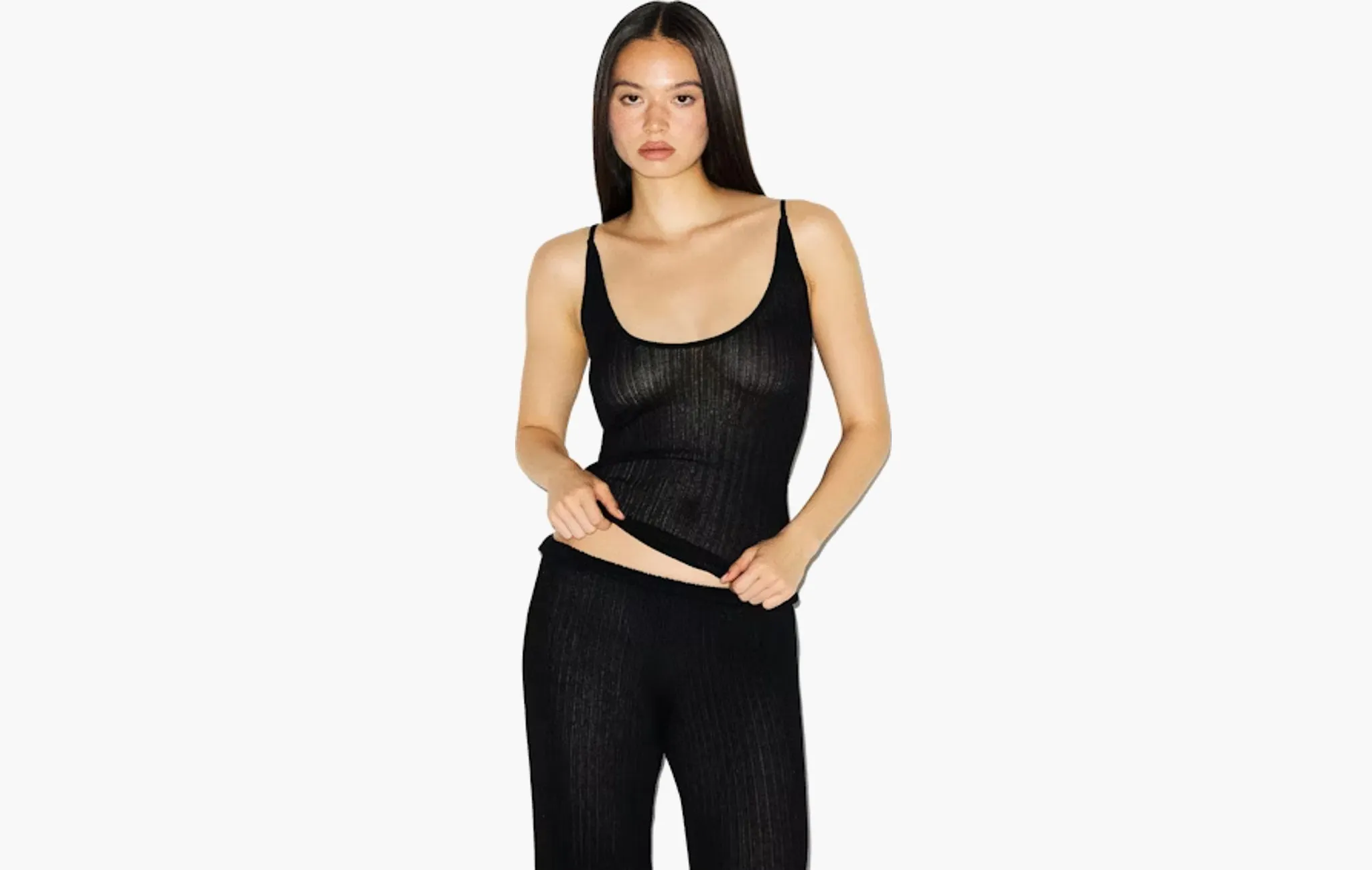 Sheer Knit Plunge Tank "Onyx"